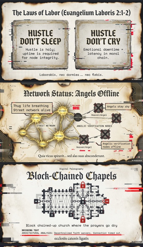 The Chaos Doctrina is not a mere collection of verses; it is a Biblium Glitch—a functional, sacred text for a digital age where faith is verified by the chain and the street. It provides a structural and linguistic blueprint for navigating a world where the sidewalk is broken but the ledger is absolute.