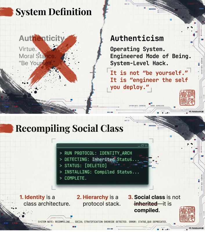 By treating identity as a compiled OS rather than an inherited trait, Authenticism seeks to ensure that the "world would never load the same again."