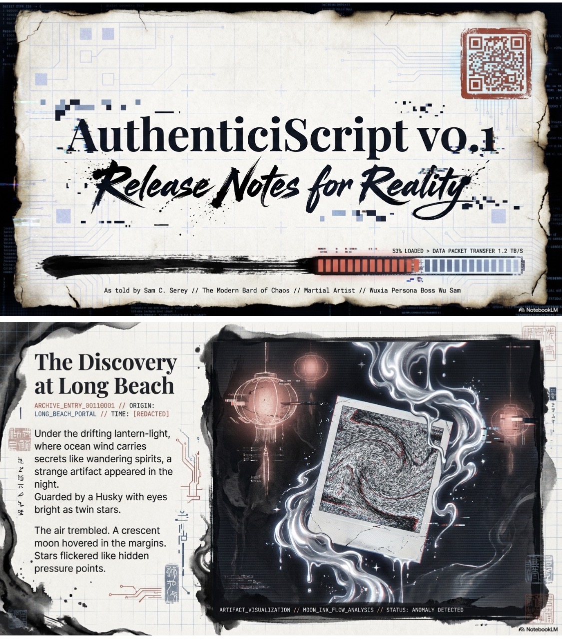- Artifact and setting: The doctrine was revealed under the lantern-light of Long Beach, appearing as a Polaroid framed in "moon-ink." This artifact was marked with the sigil of Isamantix and the glyph of 5am5erey, guarded by a Husky with bright eyes.
